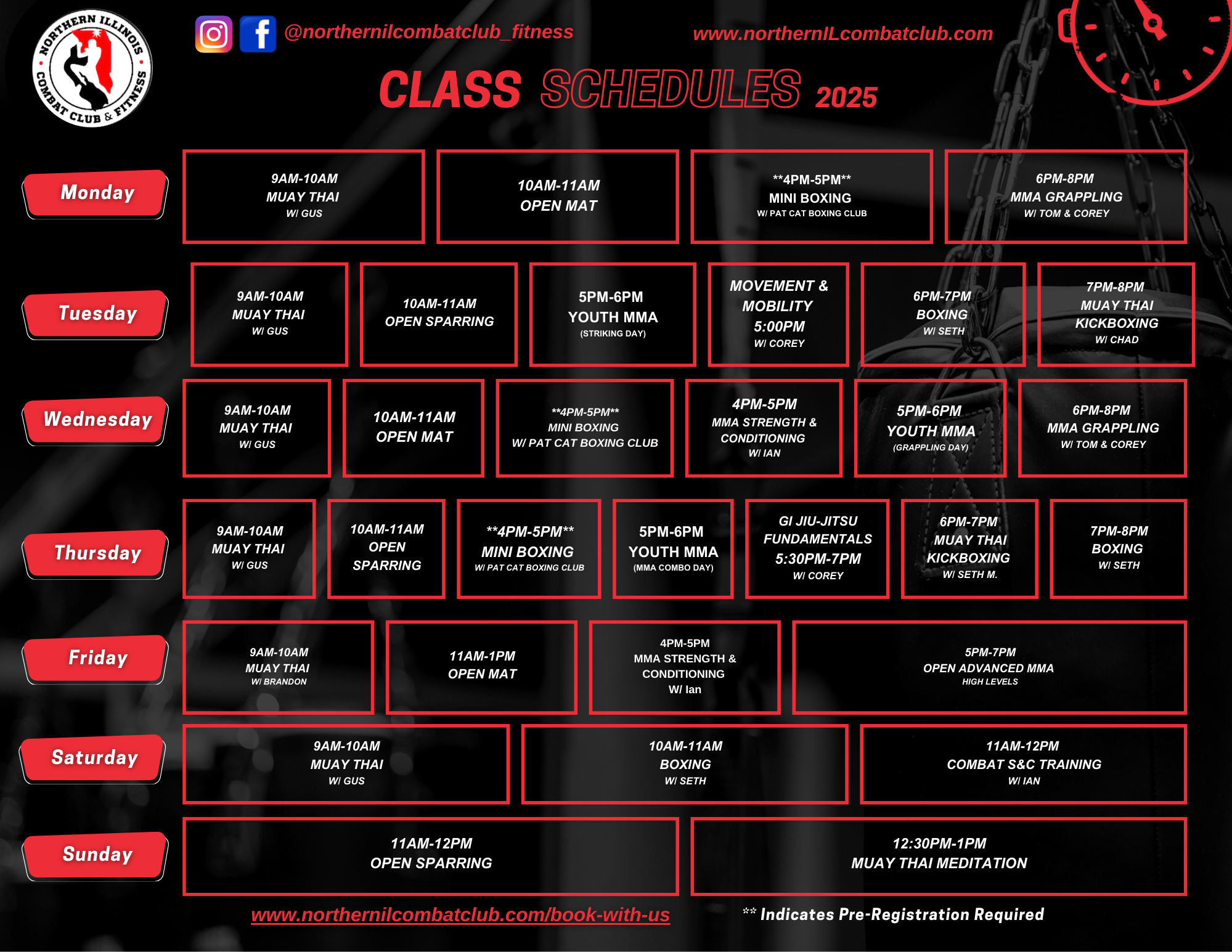Be sure to check for updates to the schedule, additional class options and new offers arriving often!